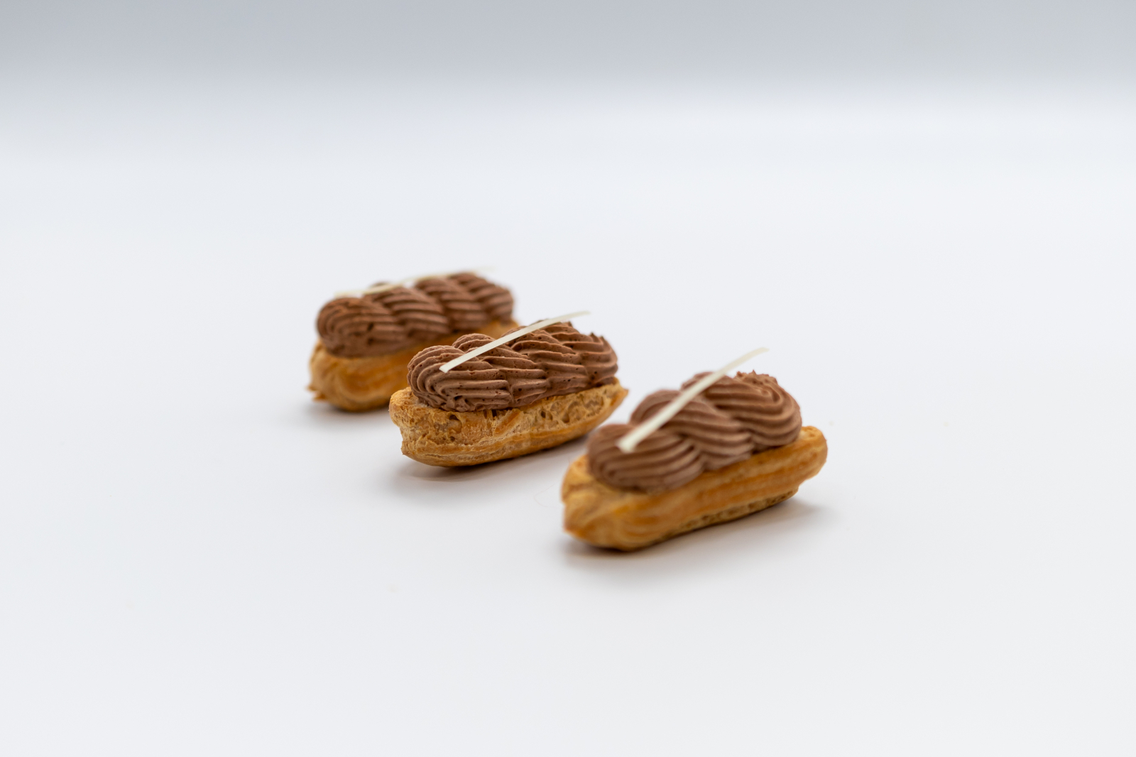 Mini eclere cu caramel și mousse de ciocolată neagră